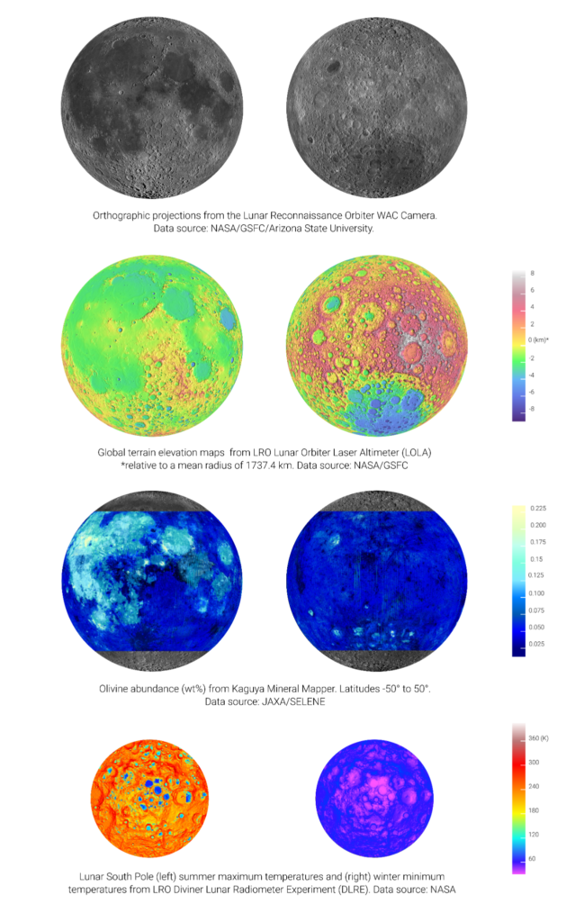Visual representation of (left) near-side and (right) far-side lunar data. Images taken using LROC Quickmap Visualization Tool.