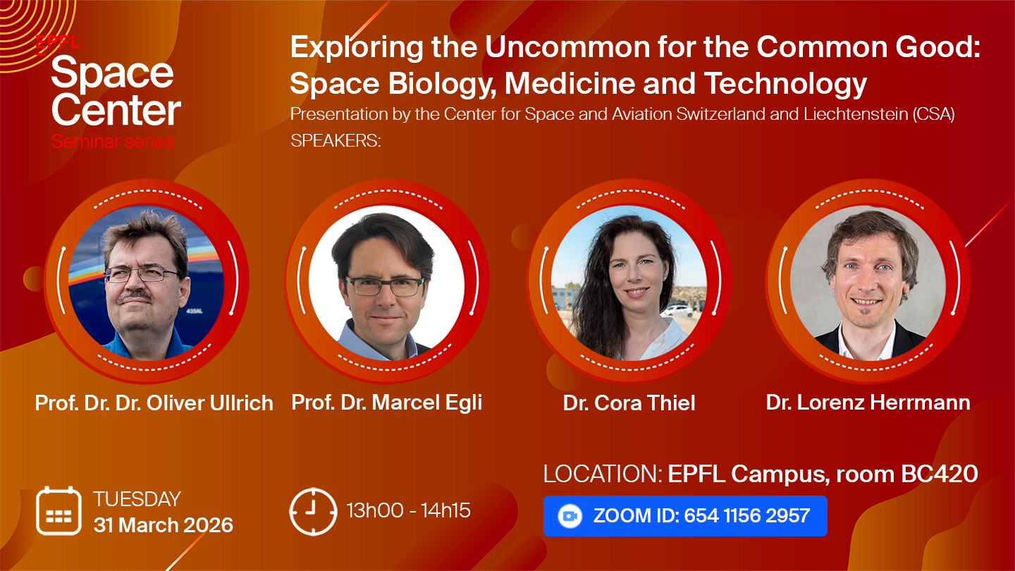 The EPFL Space Center seminar series is a regular event that brings compelling scientists, entrepreneurs, students, policymakers and others in the space field to the EPFL community to share their exciting work and research.